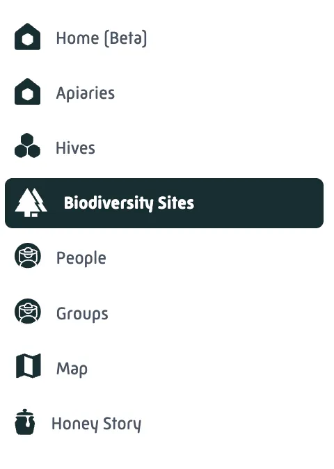 - First, navigate to the Biodiversity Sites tab on the left panel.