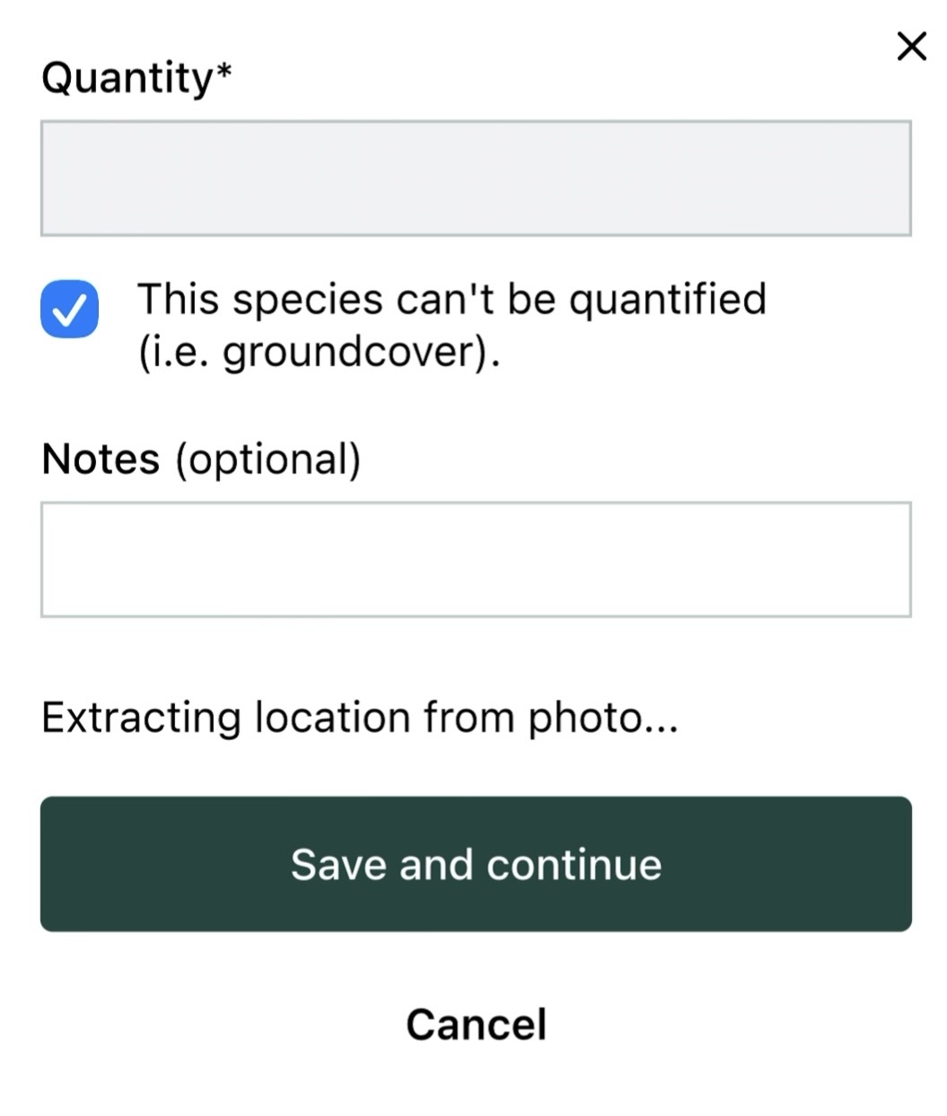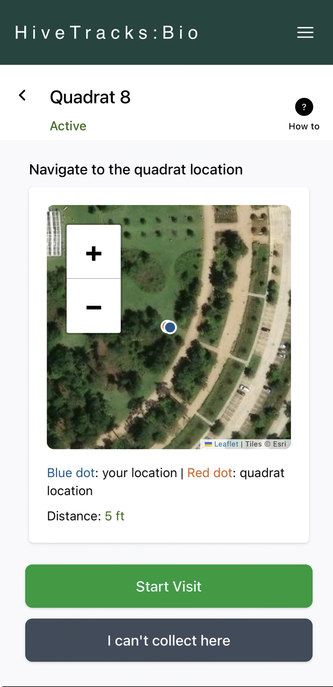 5. Once you have arrived at your Quadrat, you can hit the Take Quadrat Photo to begin.A) If you cannot perform a Quadrat here, press the I can't collect here button