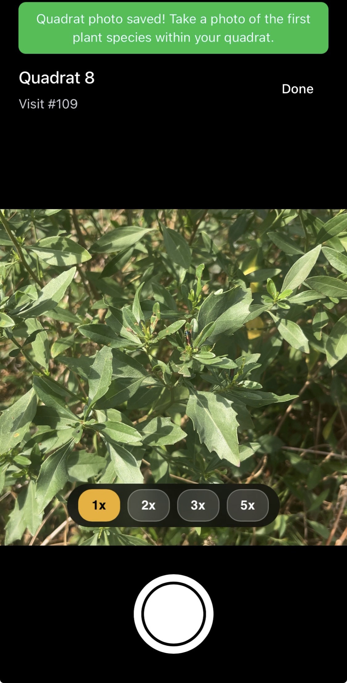 10. Once finished with taking observations in your Quadrat, press the Done button11. On the Quadrat Overview Page, sync your observations by pressing the Sync Now button.